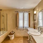Die Villa Can Riera De La Pineda verfügt über ein Badezimmer mit einem Waschbecken und einer Dusche. Badezimmer sind auch mit einem Haartrockner und Handtüchern für Ihren Komfort ausgestattet.